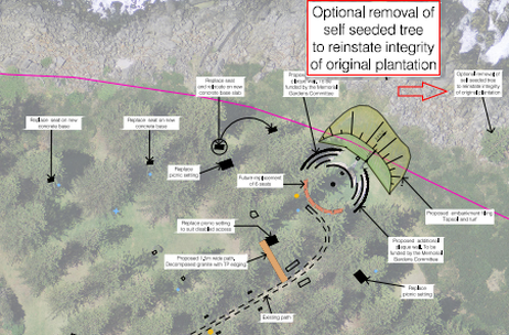 Without doubt the fastest easiest way to get the attention of Tuross Head residents and "really p*ss them" off is to announce that there is "optional removal" on the table to remove a perfectly healthy tree for no reason whatsoever other than to "reinstate the integrity of the original plantation" as shown in the Draft Plan below . A very vocal group arrived at the site today to voice their opinion and their bewilderment that Council would actually announce something "so insensitive of a community they know is passionate for these iconic trees" and so "downright stupid".