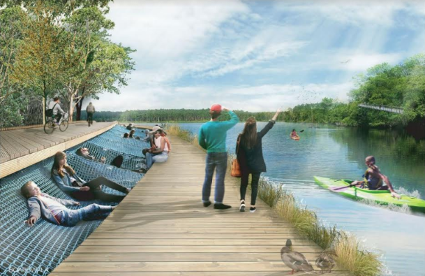 Above: Monash University architecture students created this concept design for the area behind the bowling club site as part of their studies, following a visit to Batemans Bay last year. The designs are on display from next week at Council’s Batemans Bay vision project pop-up shop as inspiration for residents to share their ideas for the town’s future.