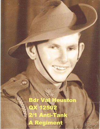 My Uncle Val Heuston enlisted in 1940 and was posted to the Artillery, was sent to Egypt, and trained as an anti-tank gunner. He served overseas until late 1942 when he was one of the Australian soldiers brought back from the desert to help defend Australia from the Japanese who were advancing through the Solomon Islands and overland in New Guinea
