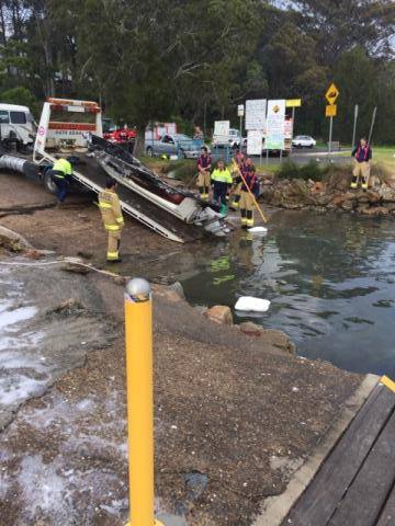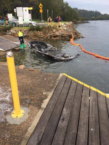 The fire was fuelled by 80 litres of petrol. The fire was swiftly and effectively extinguished using foam and dry powder extinguisher. P384, 384S and SES Moruya also attended the fire and a kind member of the public assisted in towing the boat to the boat ramp.
