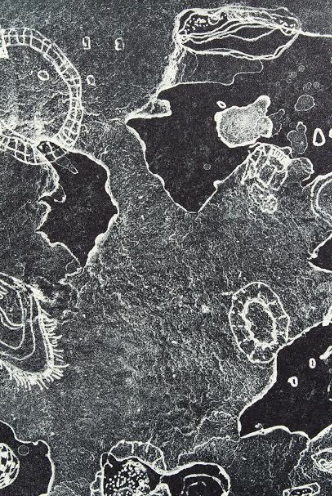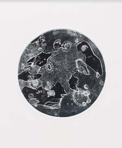 the only life you could save. To the side of the press lies a new series of works ready for framing and display over the River of Art festival. These are all new pieces, a continuation of her Midden Constellations series.