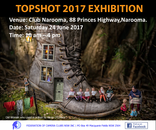 In May each year the NSW Federation of Camera Clubs (FCC) holds a photography competition called TOPSHOT. It is open to all individuals who are members of affiliated camera clubs in New South Wales. Once the judging has been completed the FCC holds an exhibition of the winning photographs.