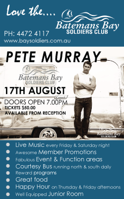 • Pete Murray will be at the BATEMANS BAY SOLDIERS CLUB on THU 17 AUG •