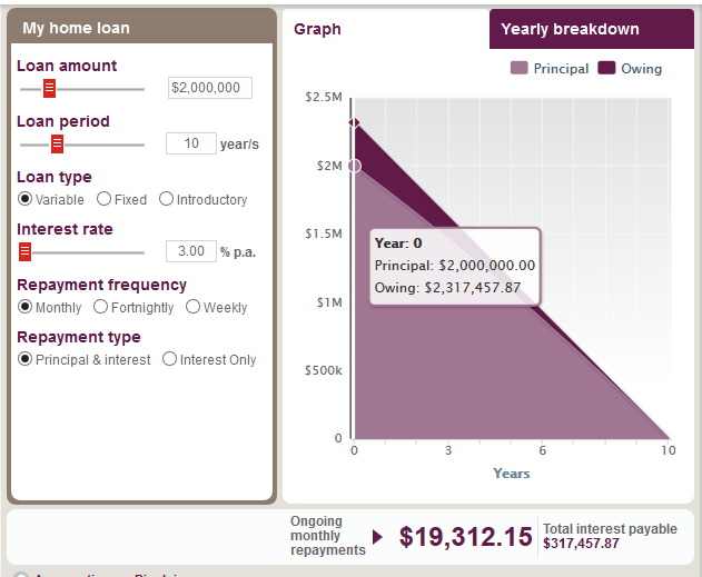 Council Response: Loan funds for the Batemans Bay Bowling Club were from NSW Treasury Corporation (TCorp). Beagle readers, from their website we learn that TCorp offers loan facilities to New South Wales local councils seeking funding for projects which make up part of their annual expenditure programmes. Loan facilities, at competitive rates, are available to local councils who are deemed Fit for the Future and satisfy TCorp’s credit criteria. The figures below are from a bank loan calculator. Borrow $2 million over 10 years and pay approx 3% and it will cost $317,000 in interest.
