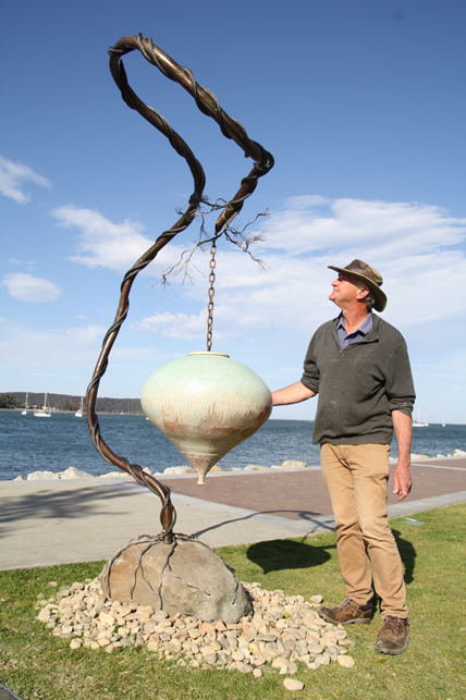 SCULPTURE ON CLYDE - the Latest Awards What a success…. Many visitors to the Bay made a special trip to see the fabulous sculptures lining the foreshore of the bay over the past 10 days People from all over Australia came through the doors of the Francis Guy shop on Clyde street and cast their vote for the People's Choice Award. The people chose the outdoor sculpture, Drop to Earth by John Payne. Payne is a well known local artist from Congo. The indoor favourite is High Flyer by Amanda Harrison, a beautiful bronze celebrating a parent and child. The Sculpture on Clyde committee of 5 got to choose their own prize. The committee prize is like the Packing Room prize at the Archibald prize at the Art Gallery of NSW…personal favourites of the organisers who aren't sculptors! The fabulous Feather by Tobias Bennet was their winner, and it was such a draw card for the crowds having a day out on Fathers Day. Batemans Bay residents are wondering where the 2017 Aquisitive Prize winner, Duet will be installed as the “octopus “ Buouyansea is in the perfect place , where the Clyde River meets the Pacific Ocean.