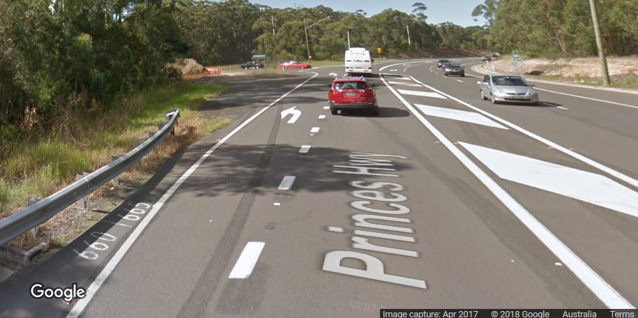 Above: The Bendalong Turnoff heading south - Image Google Media Release