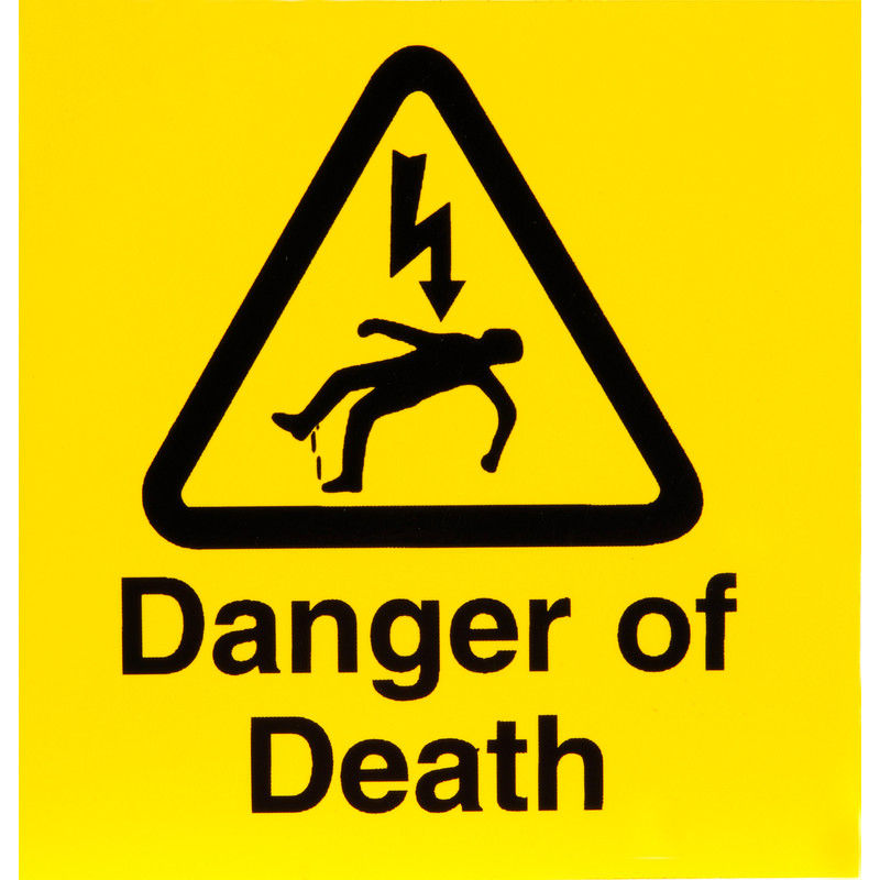 Above: Moruya Business Chamber is calling on Essential Energy to immediately place these stickers on all Moruya streetlights until they can guarantee there is no risk of electrocution to passers by touching the poles