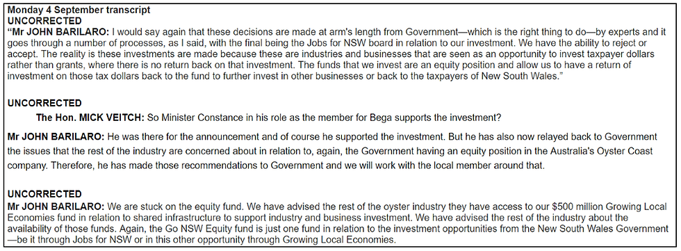 Above: Hansard extract of Deputy Premier John Barilaro comments in Budget Estimates in State Parliament September