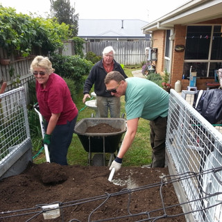 Restocking the two very large veggie beds at the Moruya Women's Refuge.
