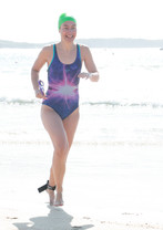 Above: Antionette, freshly arrived from a village outside Dublin and doing her first ocean swim, simply beamed her way to the finish line