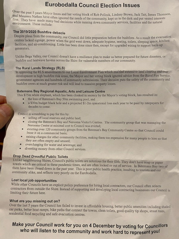 It does not have any statement of coming from one group or another and is merely highlighting some of the many deficiencies of the Innes term of Council.