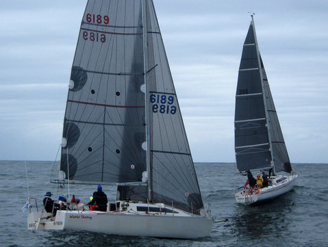 Six crews were brave enough to head out. Dion Perkins and Kathy Blankley aboard “Valhalla” decided discretion was the better part of valour and headed back in. At the start the light breeze was 25 knots less than forecast. However it soon came in forcing the sailors to change to smaller headsails or to tuck a reef in the mainsail.