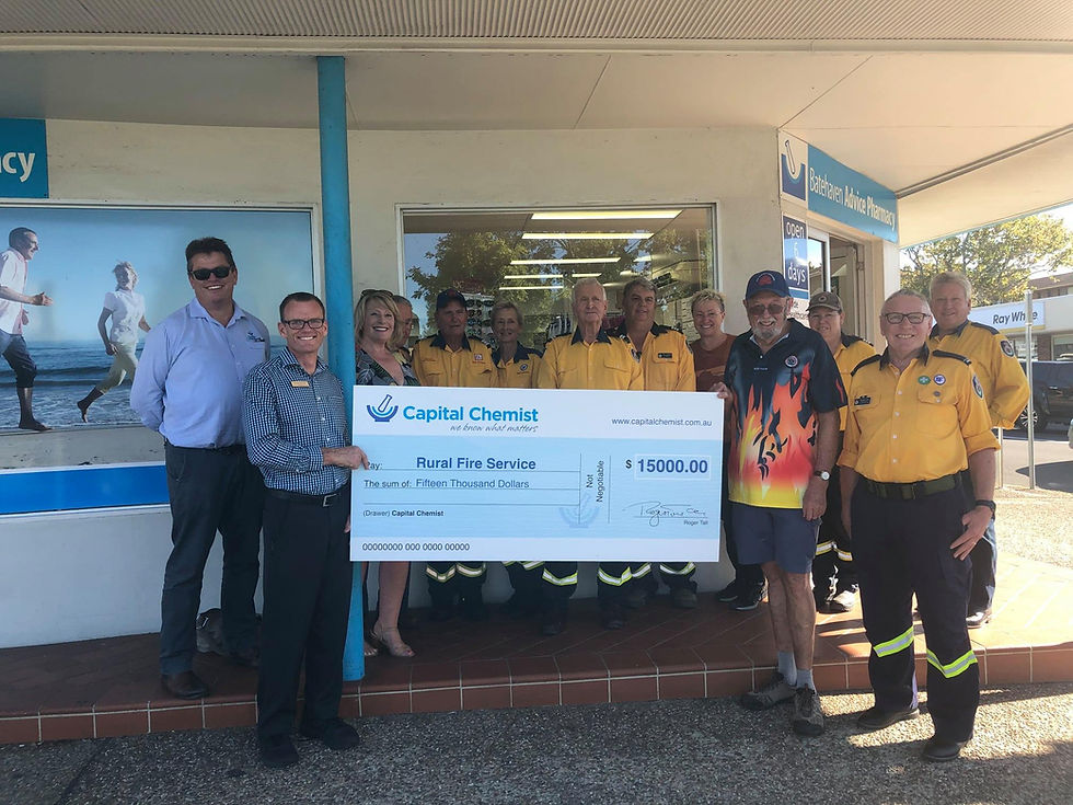 The Malua Bay brigade together with Nerrigundah, Runnyford, Belowra, Deua River and Tinpot brigades were recipients of generous donations from Capital Chemist at Batehaven this week with the six RFS brigades receiving a donation of $2500 each.