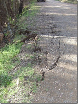 Councillor McGinlay met with over twenty locals at the McGregors Creek Bushfire shed to then visit the many sections of road that have failed west of the landslide. Most of these, from the photos and evidence provided to The Beagle appear to be due to lack of maintenance or by genuine commitment by Eurobodalla Council to maintain what was once an important Main Road through the region.