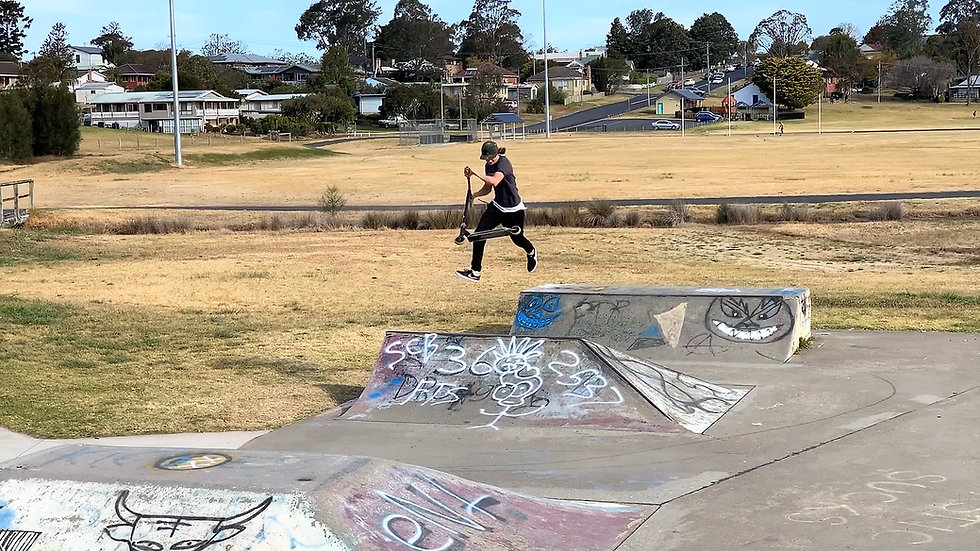 Above: Scooter gets air at the Moruya skate park. A series of five competitions and four skills clinics for skate, scooter and BMX enthusiasts will be held across the shire in coming months.
