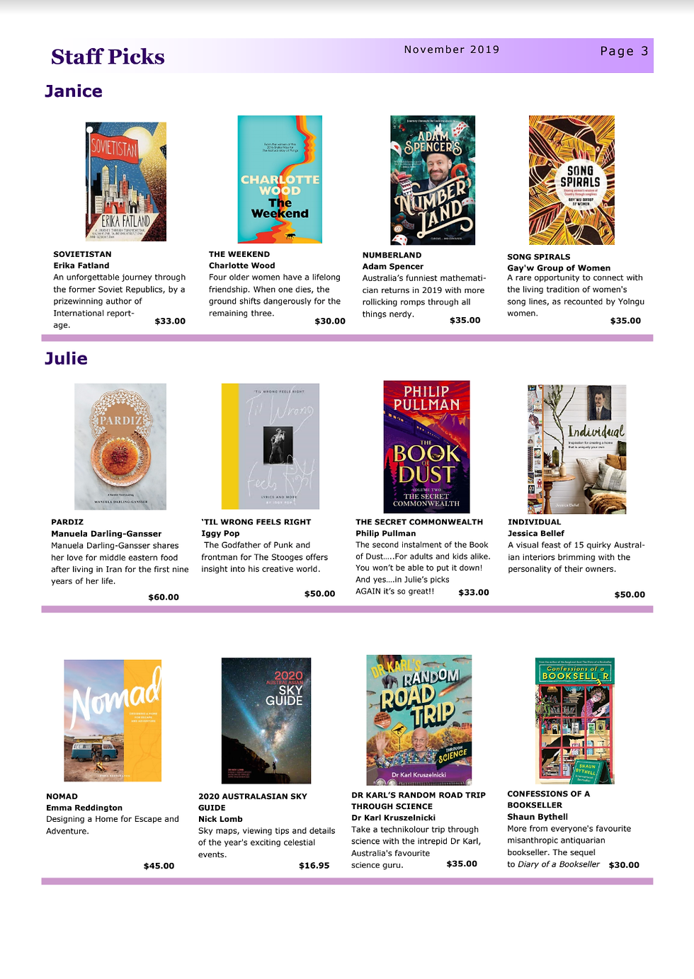 Moruya Books newsletter Nov 2019