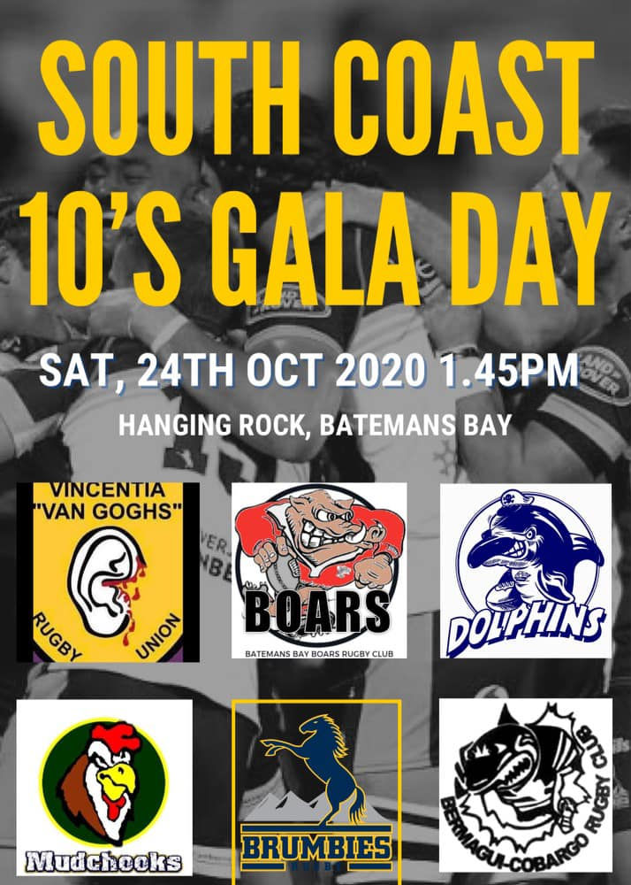 10-a-side Rugby Union Gala Day Saturday 24th October 2020 @ Hanging Rock Ovals, Batemans Bay