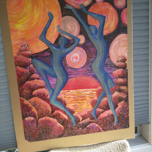 Thus the idea of Unframed Art - a way for ‘ordinary’ and considerably less affluent folk who love art, or who love to paint or draw, to be able to buy and sell art works without the present financial constraint or risk . Paintings or sketches mounted on reused cardboard are light and safe for both geriatrics and children (no shattered class or damage or injury when dropped).